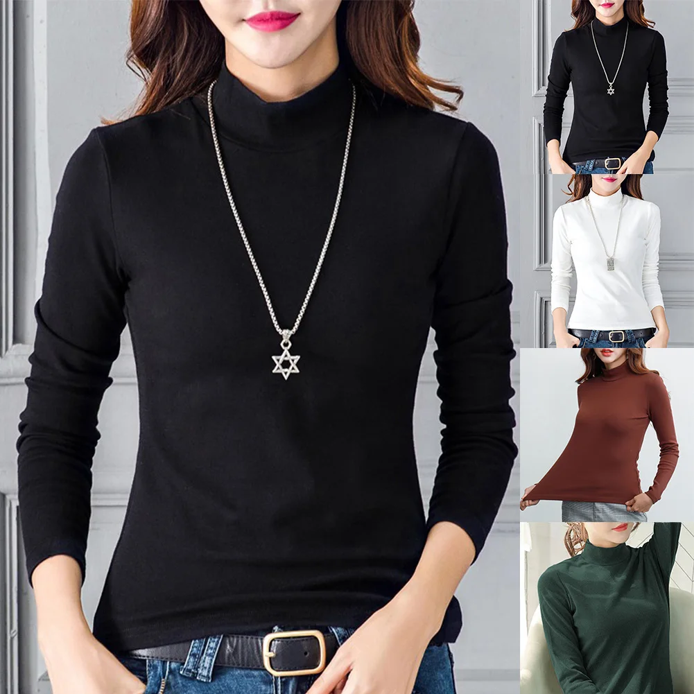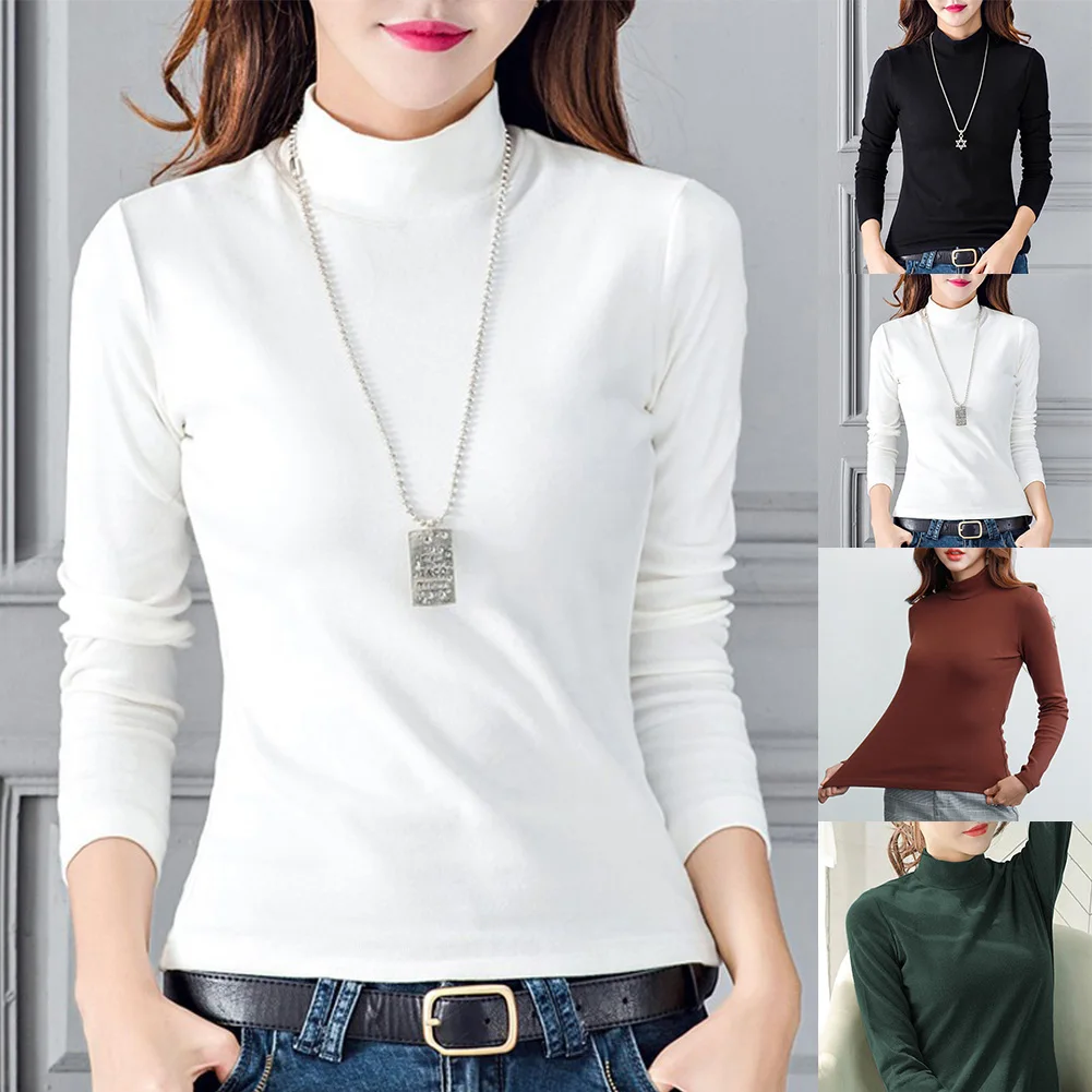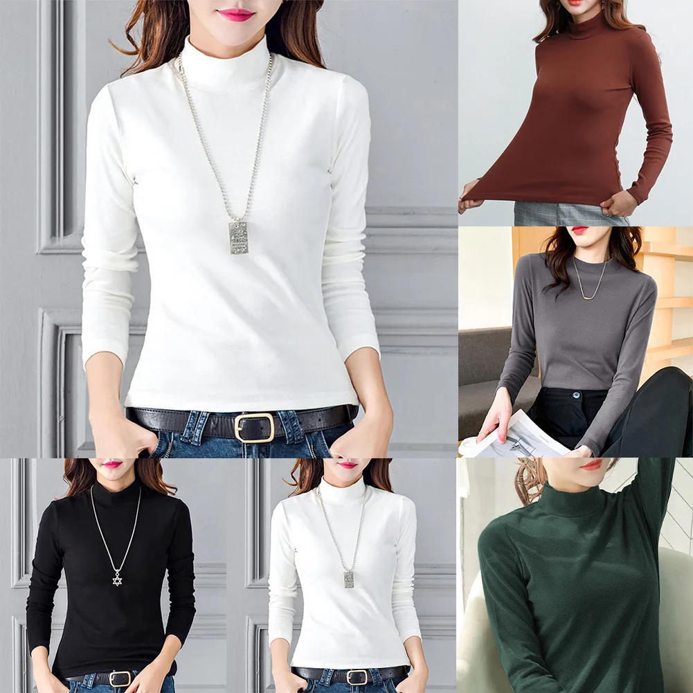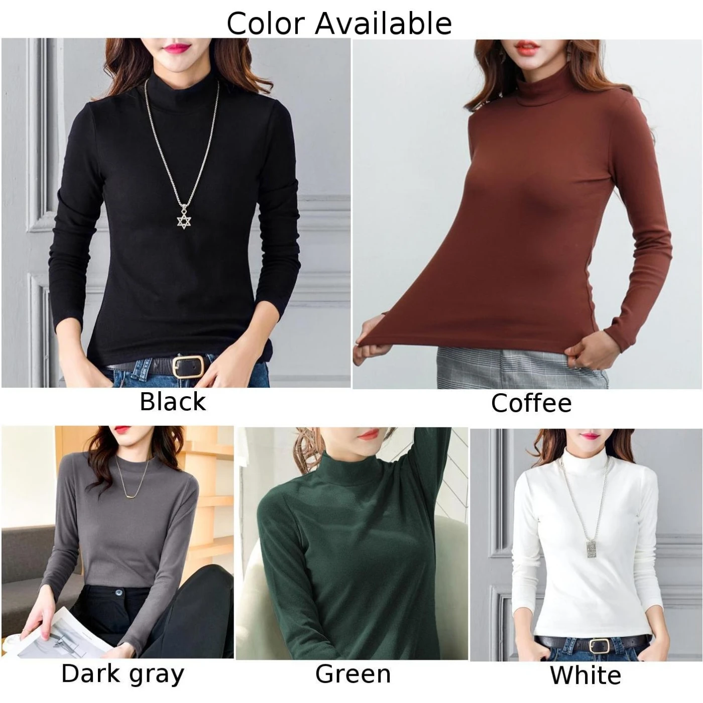 * Item Fabric:Polyester * Item Color:Black,White,Dark gray,Coffee,Green(As pictures show) * Item Features:Women Turtleneck, Base Layer Shirts, Long Sleeve, Warm,Slim Fit ,Thermal Underwear Tops * Item Condition:Brand New * Item Description: 1) Applicable gender:Female 2) Clothing Length:Regular 3) Neckline:Turtleneck 4) Sleeve Style:Long Sleeve 5) Elasticity:High Strech 6) Pattern:Solid color 7) Style:Casual 8) Suitable season:Autumn,Winter 9) Application:Daily * Package Contents:1*Tops(Other items not included)
