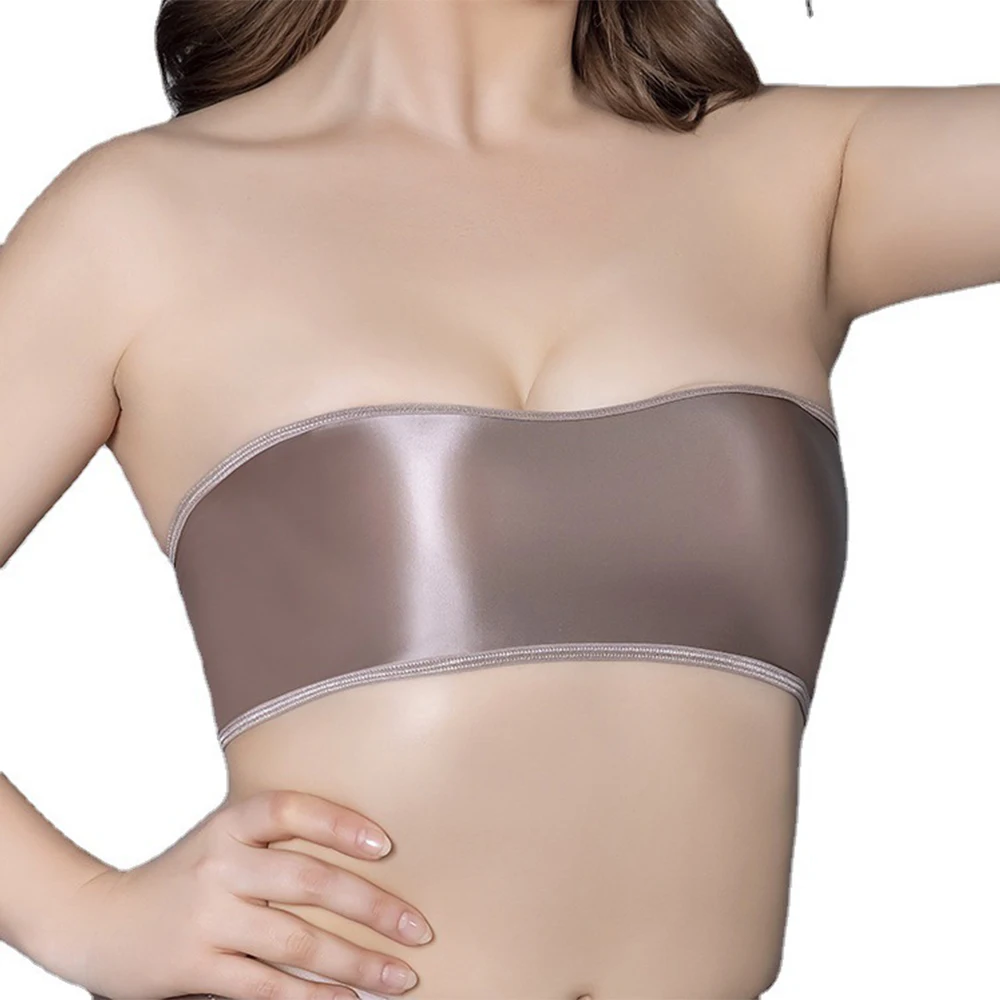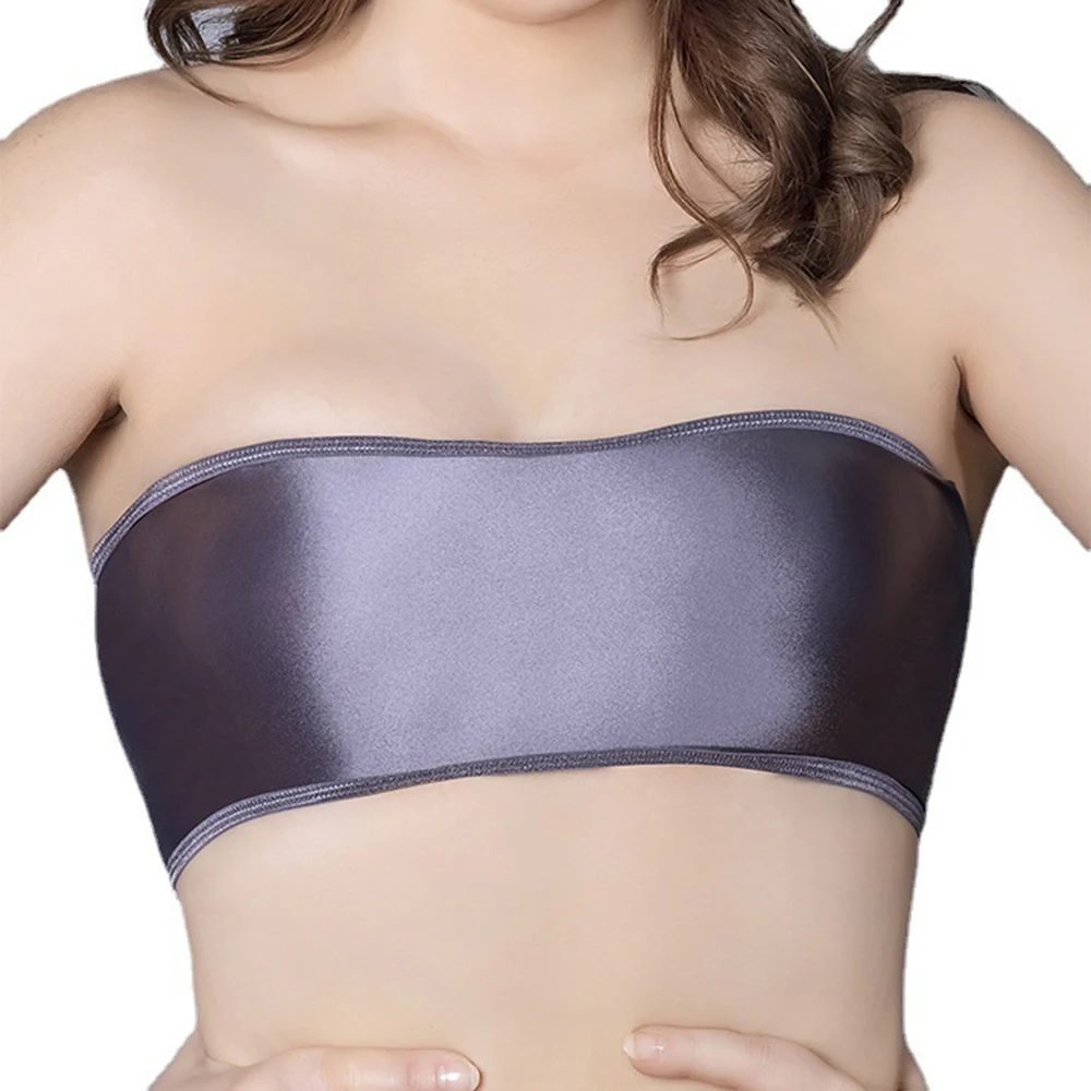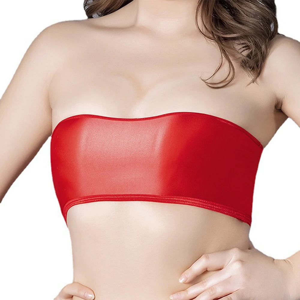 * Item Description:️Ladies Plain Oily Gloss Tube Strapless Bandeau, Bra, Elastic Stretch Bra Crop Top,Tight Lingerie Underwear